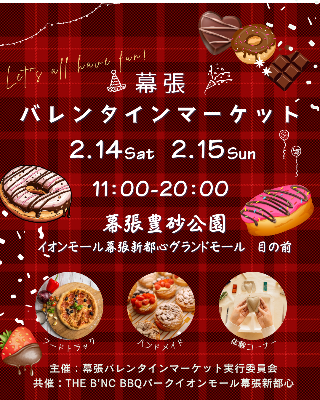 2/14(土)、2/15(日)の「幕張バレンタインマーケット」の開催と合わせて、ハンドメイドブースの募集を開始しました。 この週末、豊砂公園ではバレンタインにちなんだフードトラック、フォトスポットの他、焚火ラウンジなど、ぬくもりあるイベントを開催予定です。 |